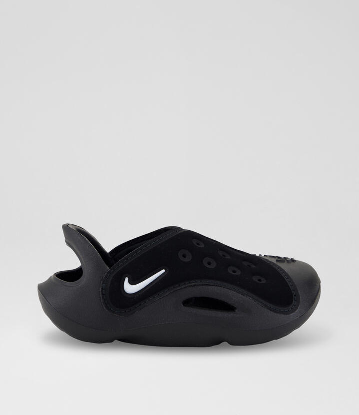 Help your little explorer stay ready for adventure with the Nike Aqua Swoosh. Soft fabric up top and plush foam underfoot help make for comfortable steps while a heel strap secures the fit. Plus, drainage holes on the upper and cutouts along the sides help make these ideal for splash pads, pool days and other water activities.