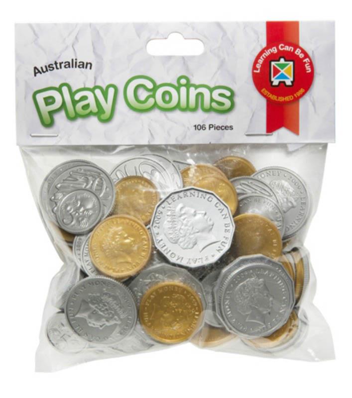Great quality, plastic play coins in Australian currency are a great addition to role playing games and learning.