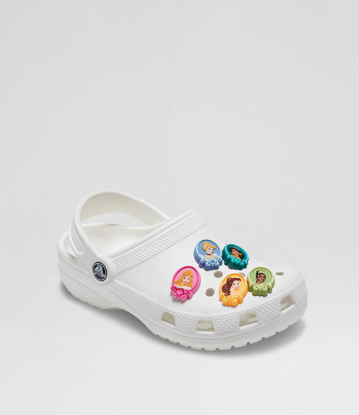 Pop some personality into your shoes with these Disney Princess 5 Pack Jibbitz™ charms. They’re the perfect addition to your favorite pairs of clogs, slides, and more.