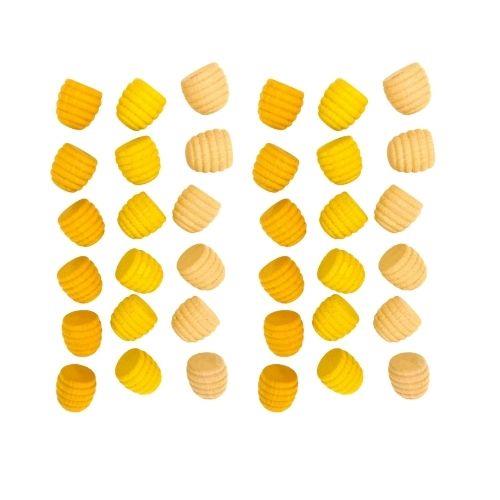 The Grapat Mandala Honeycomb set is a beautiful open ended wooden play toy containing 36 little yellow honeycombs which can be used in a variety of ways. Your little one can have a unique sensory experience as they design their own mandala, which also helps to develop their fine motor skills and their understanding of patterns and symmetry.