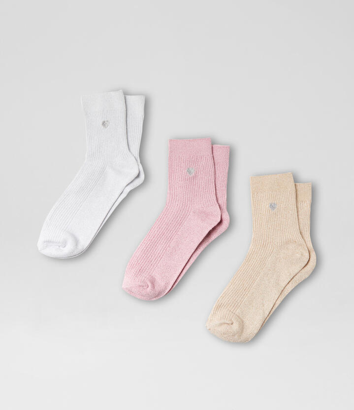 Half Crew Glitter 3 Pack Pink Tan Silver Cotton Socks