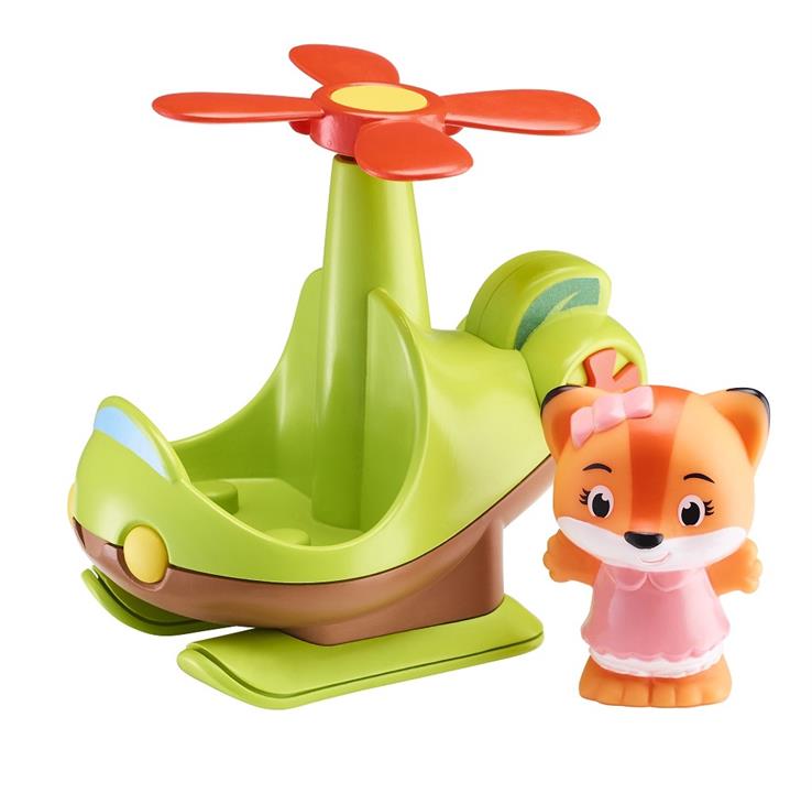 The helicopter allows you to fly to characters over the magical forest. The petal shaped propellers turn when the helicopter is rolled back and forth.