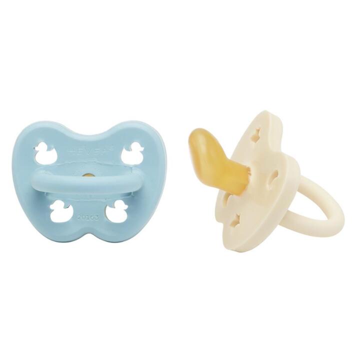 Hevea Orthodontic Teat Pacifier Blue and Milky White 2 Pk (0 to 3 M)