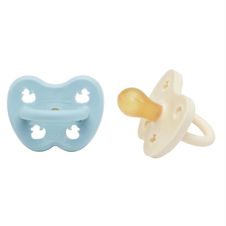 Hevea Round Teat Pacifiers Baby Blue and Milky White 2 Pk (0 to 3M)