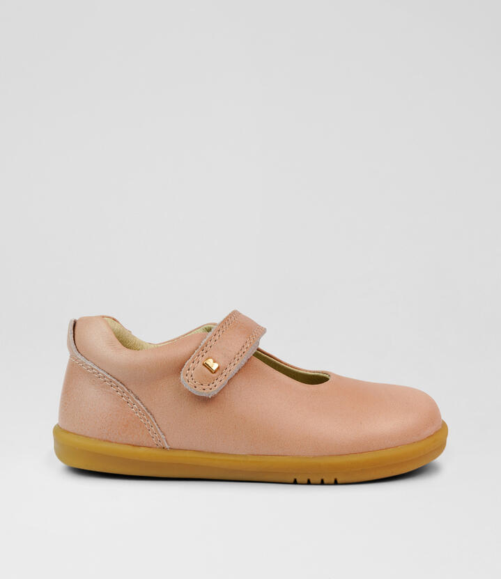 These classic Mary Janes style complement any outfit no matter the occasion. A touch of shine is added with a gold icon stud adorning the strap fastening, completing the sophisticated look of the DELIGHT. Suitable for confident walkers, this Bobux style fits true to size.