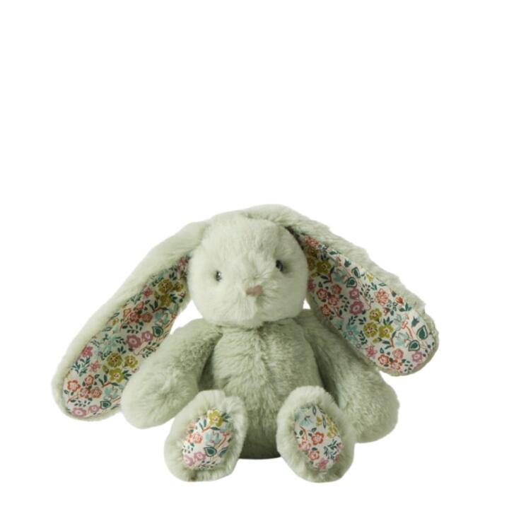 Crafted with love, the bunny features a plush Mint body, floral lined ears and feet, and child-safe trimmings, making it an ideal choice for both sensory stimulation and comfort. The floppy ears are perfectly sized for little hands to grab and carry, making it easy for tiny adventurers to take their bunny on all kinds of fun escapades.