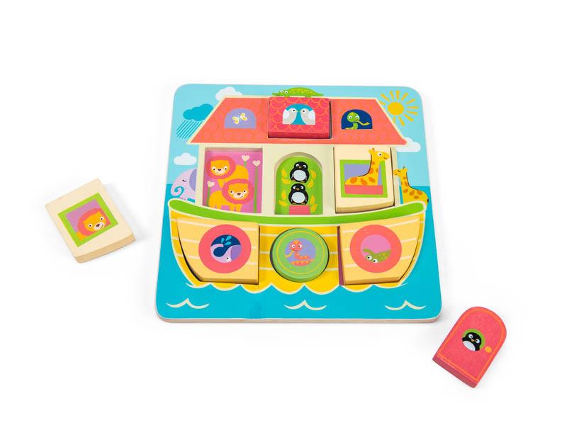 All aboard Noah’s Ark! Seven cute wooden animal pieces to place in the puzzle, beautifully made and painted.