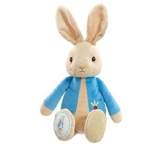 This is Peter Rabbit. Featuring an embroidered radish and the iconic image of Peter Rabbit on his foot. A cute licenced soft plush toy.