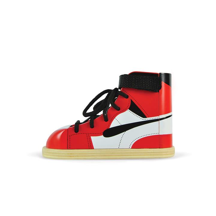 The Old School Learn To Tie Trainer is a unique wooden sneakerthat teaches kids to lace, tie, and velcro their shoes, building fine motorskills and inspiring independence and confidence.Each “trainer” is packedin a colourful, sturdy box that includes an illustrated how-to-tie guide thatcan be cut out for reference.Constructed from solid beech woodwith details in BPA-free non-toxic paint.Recommended for ages 5 years +