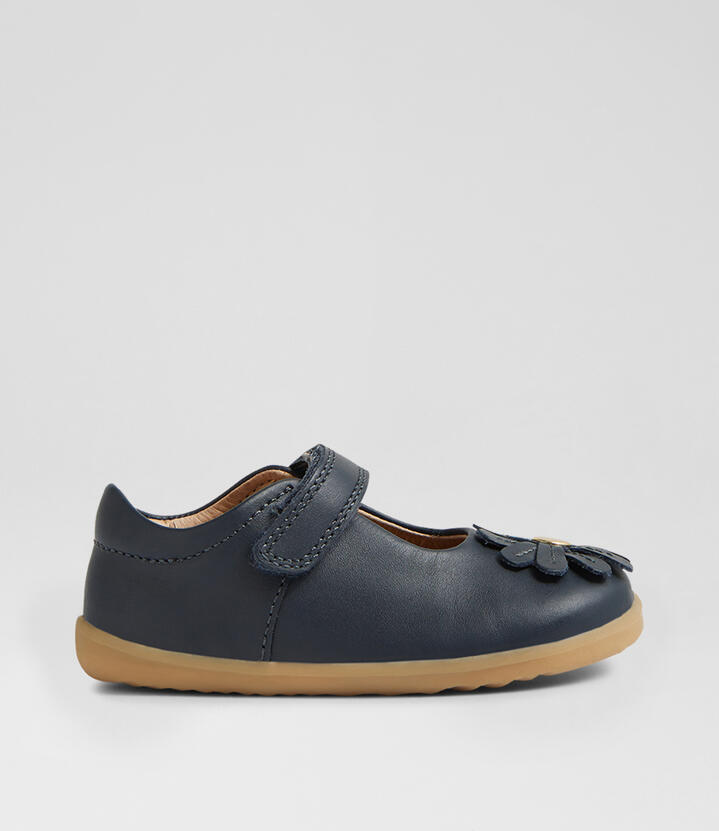 Sweet and simple, the PIXIE Mary Janes add an element of play to any outfit. A single hook-and-loop strap provides a secure and convenient fit and is perfect for small independent fingers to manage. Crafted from soft, fast-drying leather and topped with a daisy embellishment, PIXIE is a charming design for all occasions. This design is suitable for first walkers.