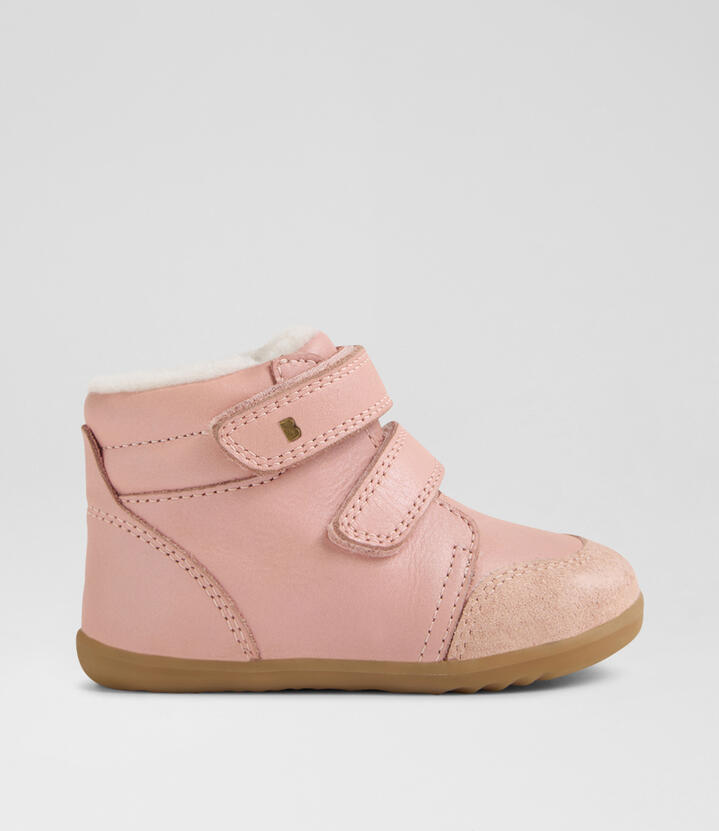 Lined with soft woolly merino and featuring Bobux’s SPLASHTEX® internal waterproof membrane, the TIMBER ARCTIC boots keep kids feet warm and dry in the coolest of climates. The padded ankle cuff and adjustable strap fastenings make for street smart boots while the high-top design and stitch detailing add timeless style. Suitable for first walkers, this Bobux style fits true to size.