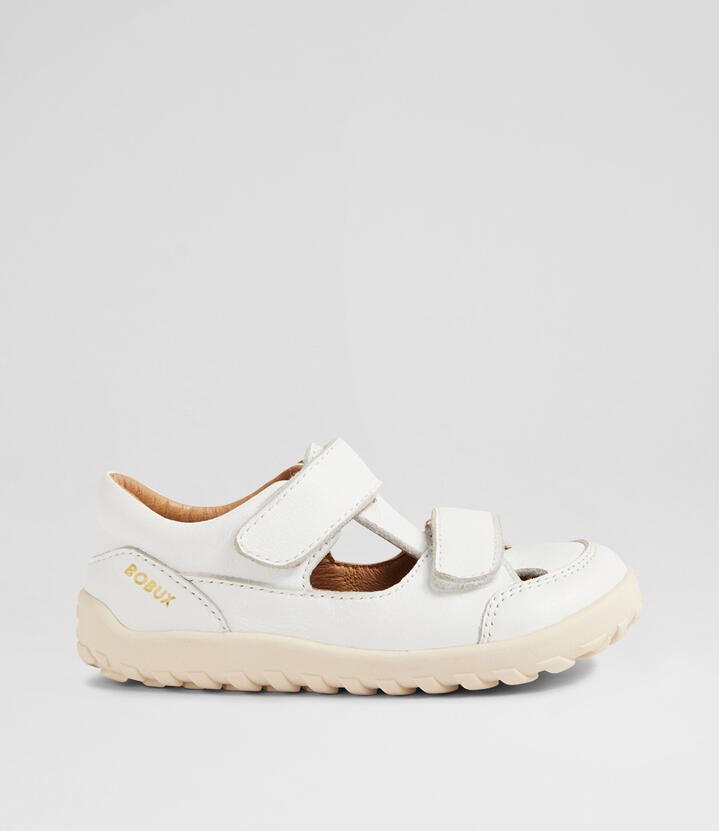 The TROOP sandals are a simple style for busy kids. The double-strap design has excellent adjustability, and is easy for kids to put on and take off. A padded ankle collar and grippy rubber sole provides the comfort and durability to keep going and going. Designed for Extreme Natural Movement, TROOP features a flat sole and barefoot-shaped toe-box, and is a hero of our Alpha by Bobux collection. Made for first walkers.