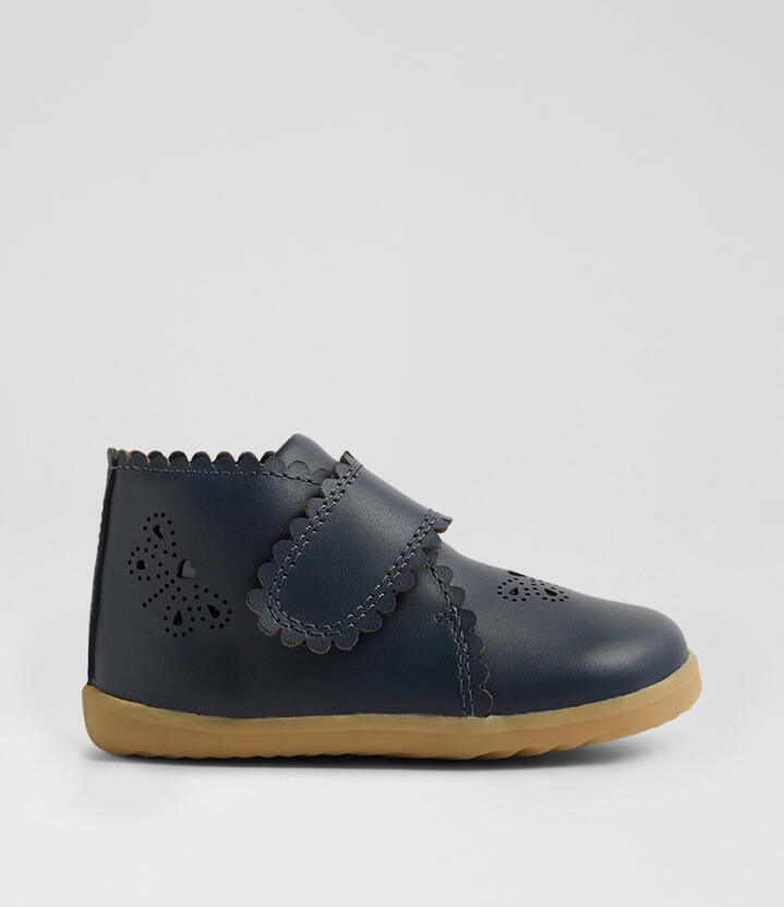 The WILLOW boots dress up any outfit with ease. The wide adjustable strap makes it easy for little hands to secure, while the sole flexes with the natural movement of the foot, keeping them comfortable on the go. Crafted in soft leather, WILLOW is enhanced with cut-outs and pinked edges for a stylish finish. This Bobux design is suitable for those taking their first steps.