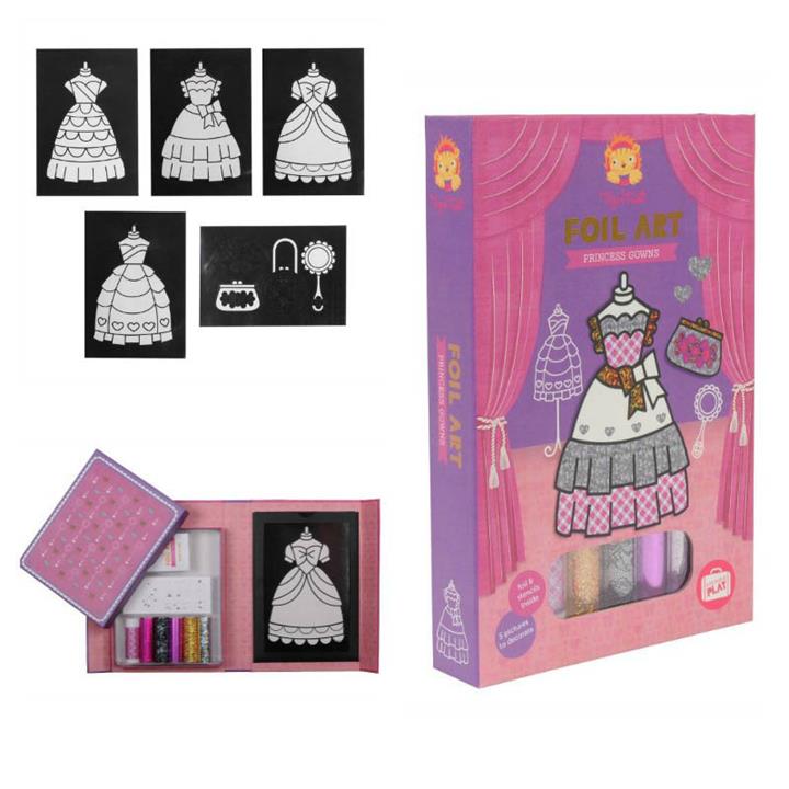 Create the most beautiful glittery, shimmering ball gowns EVER! No-mess, creative crafty foil activity for creative kids.