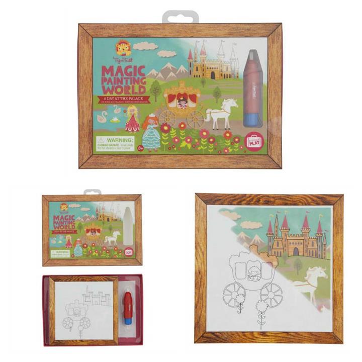 Discover the princesses world hiding in the pictures with a magical sweep of your water brush! Become a magical artist with each brush stroke revealing the royal illustrations, over and over again.